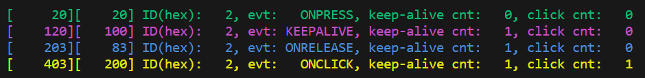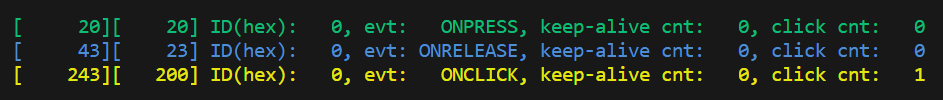 [ 20][ 20] ID(hex): 3, evt: ONPRESS, keep-alive cnt: 0, click cnt: 0